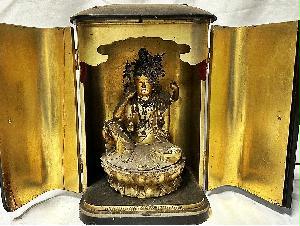 《如意輪観音玉眼入 厨子入名品 厨子高35cm 御仏像25.5cm》