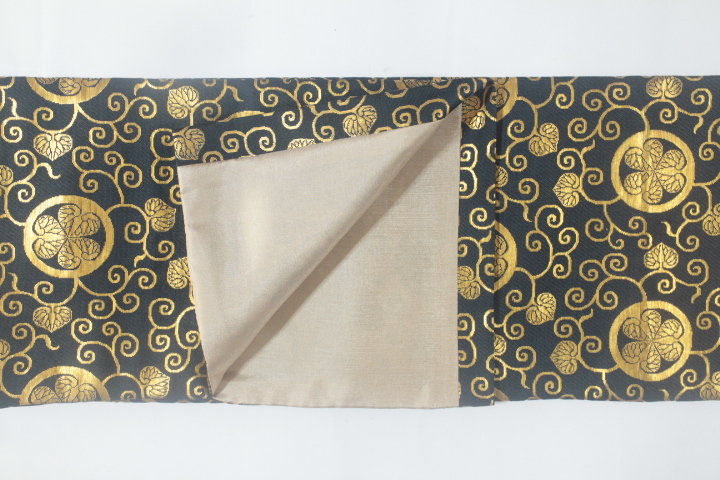 ◇色柄:紺地に金糸葵紋(口裏生地:薄茶色)