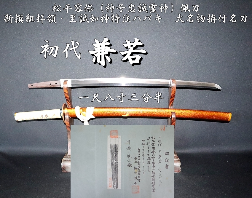 ⭐️松平容保(神号忠誠霊神)佩刀 初代兼若 新撰組拝領・至誠如神特注ハバキ 一尺八寸三分半