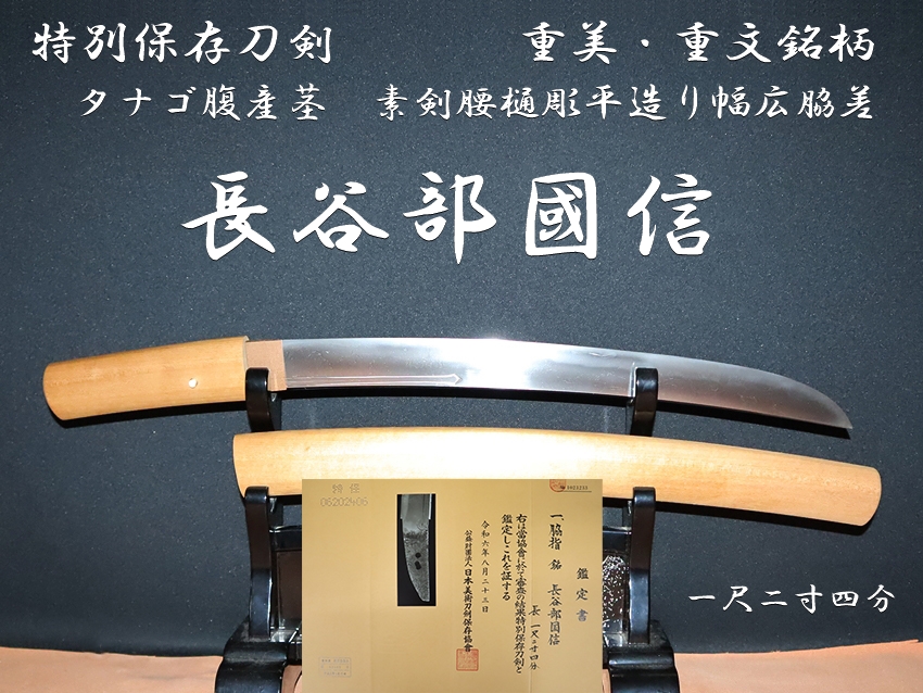 ⭐️長谷部國信 一尺二寸四分☆特別保存刀剣☆重美・重文銘柄☆タナゴ腹産茎 素剣腰樋彫平造り幅広脇差⭐️