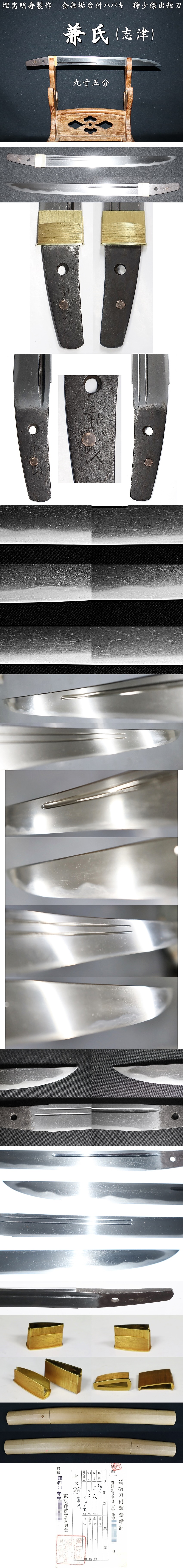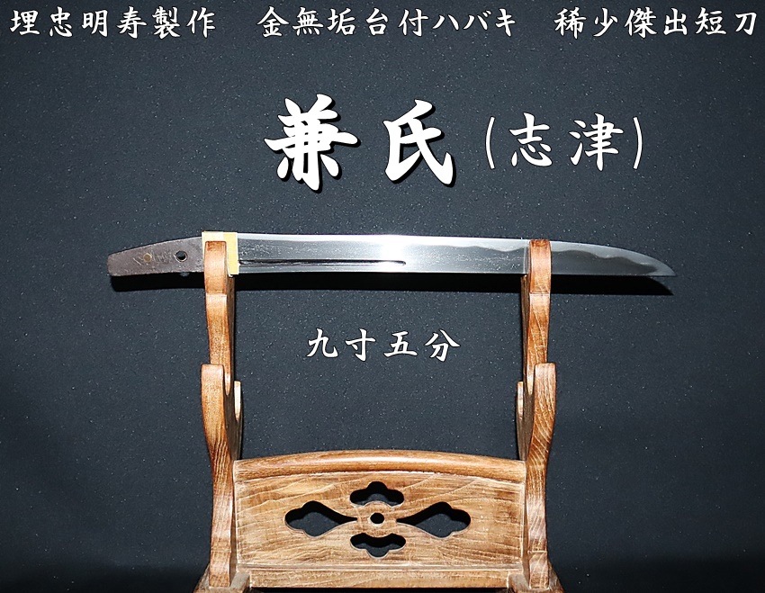 ☆兼氏(志津) 九寸五分 埋忠明寿製作 金無垢台付ハバキ 稀少傑出短刀☆