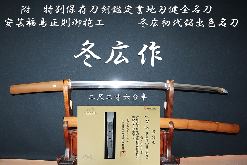 ⭐️冬広作 二尺二寸六分半 安芸福島正則御抱工 冬広初代銘出色名刀⭐️附 特別保存刀剣鑑定書地刃健全名刀⭐️