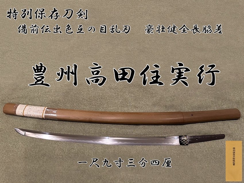⭐️特別保存刀剣⭐️豊州高田住実行 一尺九寸三分四厘 備前伝出色互の目乱刃 豪壮健全長脇差⭐️