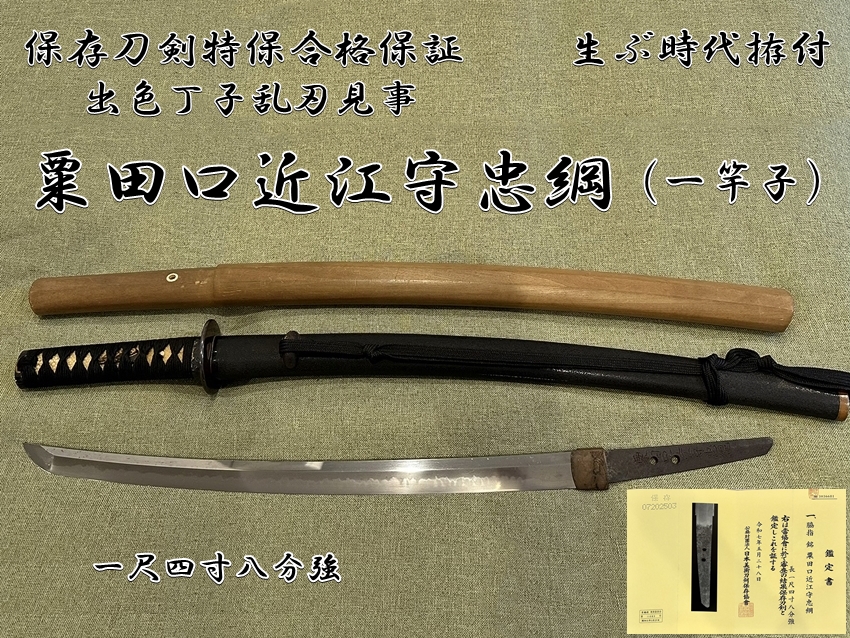 ⭐️保存刀剣特保合格保証⭐️粟田口近江守忠綱(一竿子)一尺四寸八分強 出色丁子乱刃見事 生ぶ時代拵付