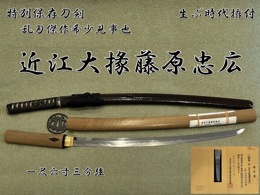 ⭐️特別保存刀剣⭐️近江大掾藤原忠広 一尺六寸三分強 乱刃傑作希少見事也 生ぶ時代拵付⭐️