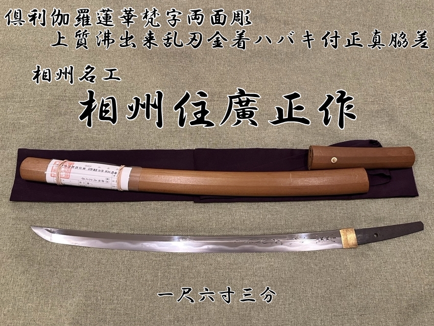 ⭐️相州名工⭐️相州住廣正作 一尺六寸三分 倶利伽羅蓮華梵字両面彫 上質沸出来乱刃金着ハバキ付正真脇差