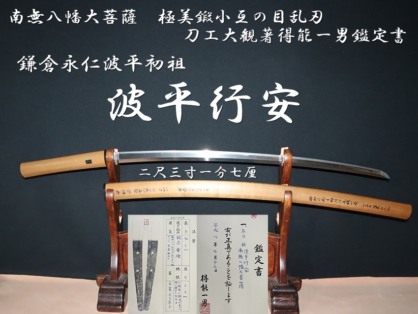 ⭐️鎌倉永仁波平初祖⭐️波平行安 南無八幡大菩薩⭐️二尺三寸一分七厘⭐️極美鍛小互の目乱刃⭐️刀工大観著得能一男鑑定書⭐️