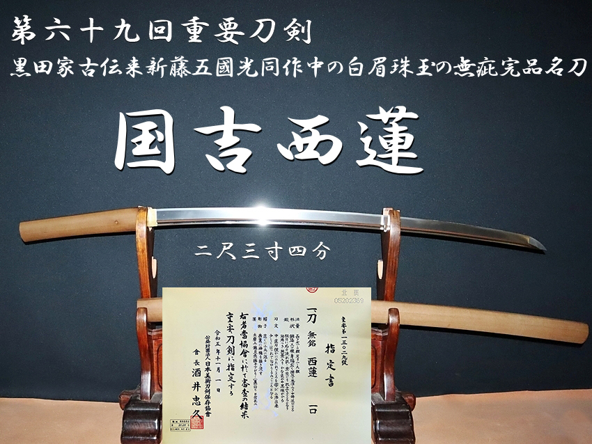 ⭐️第六十九回重要刀剣 国吉西蓮 二尺三寸四分 黒田家古伝来新藤五國光同作中の白眉珠玉の無疵完品名刀⭐️