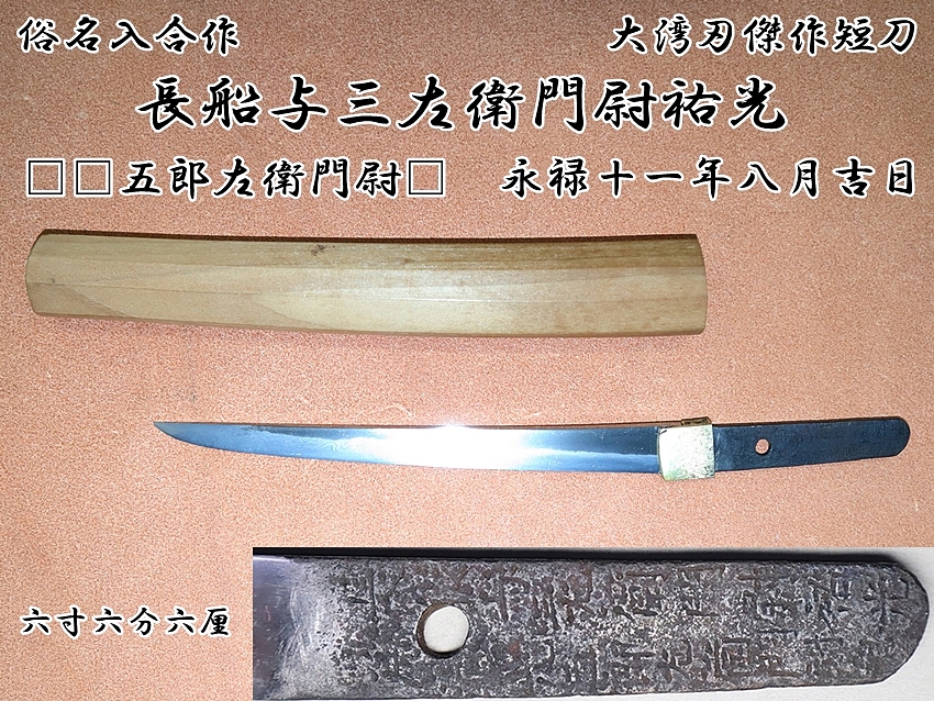 ⭐️長船与三左衛門尉祐光 □□五郎左衛門尉□ 永禄十一年八月吉日 俗名入合作 六寸六分六厘 大湾刃傑作短刀⭐️