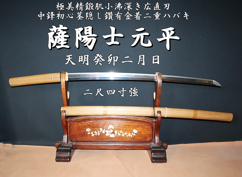 ⭐️薩陽士元平 天明癸卯二月日 二尺四寸強 極美精鍛肌小沸深き広直刃中鋒初心茎隠し鑽有金着二重ハバキ⭐️