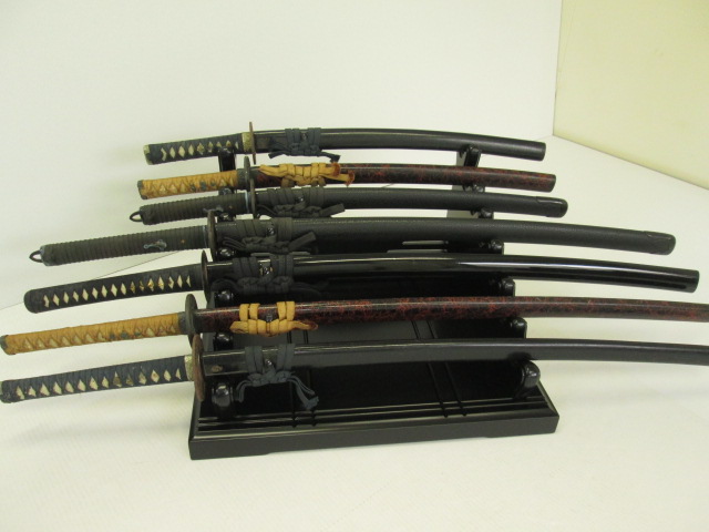 今回の出品商品は 低床型7本刀掛けです、楠材、ウレタン塗装、