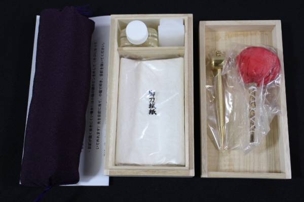 刀剣 保存 手入用具 桐箱【5点セット】+【枕】 打ち粉(赤色)☆説明書付 ◎油の無駄なし 高級 手入れ道具 手入れ用具 真剣用