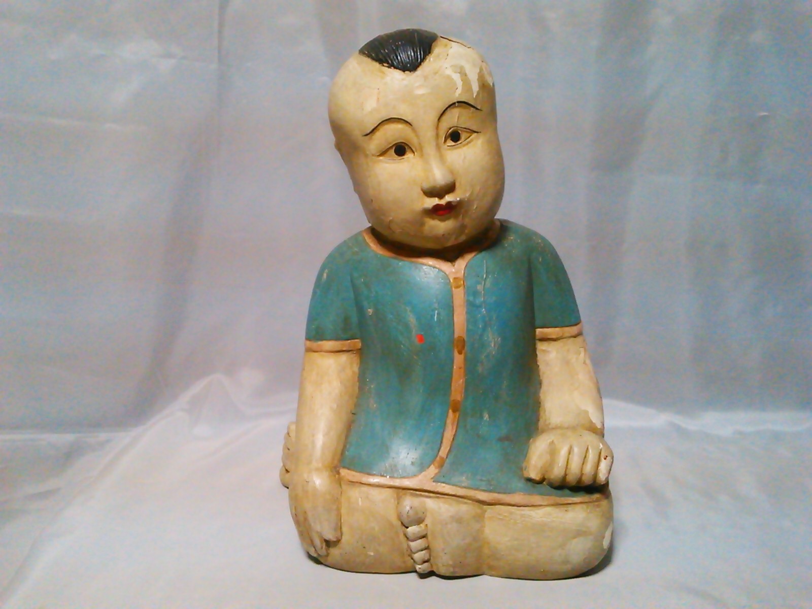 一木彫り 彩色 唐子像 清朝期骨董 F1215