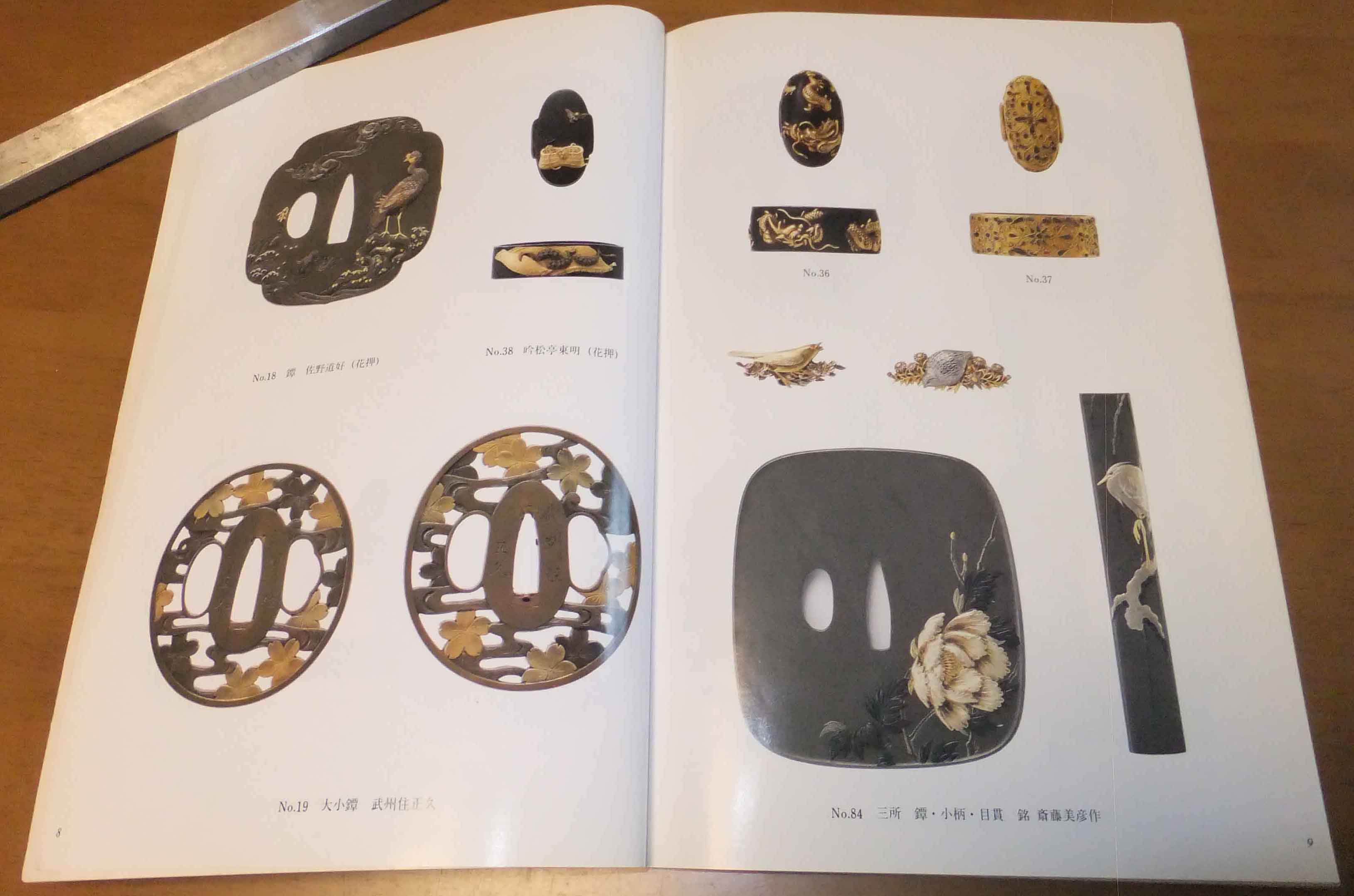 | このカタログは全国刀剣商業組合が1988年に開催したオークションのカタログです。中々今では見掛ける事の少ないカタログかとは思います。主に掲載されていますのは重美で吉家作・重要刀剣で太刀で時真・備前国長船住近景 元応元年・刀で越後守包貞・兼定・備前国住長船次郎左衛門尉勝光 同次郎兵衛尉治光 大永三年八月日・脇差しで越中守藤原正俊 慶長七年日です。小道具では顕乗の三所を始め刀装具や印籠などが数は少ないですが掲載されています。 | |||