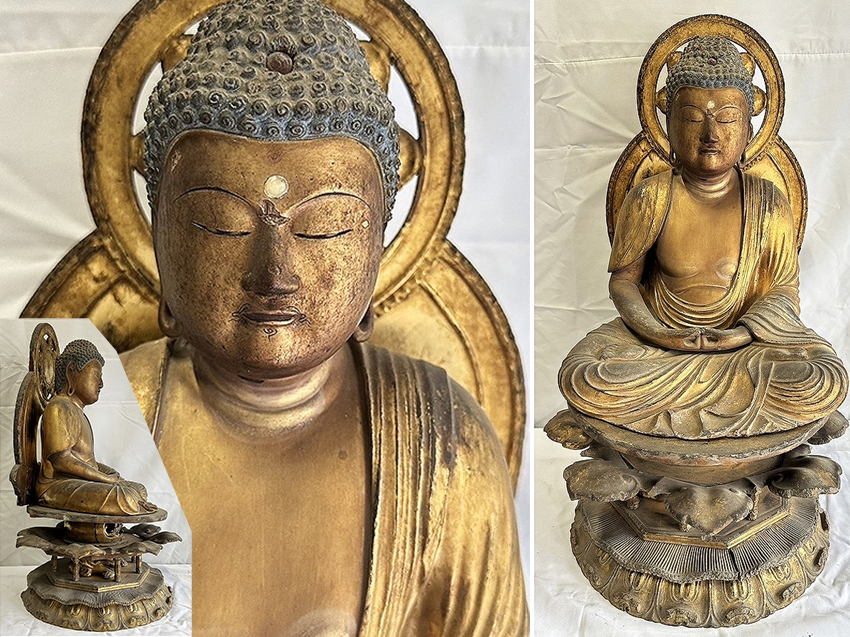 《阿弥陀如来坐像 ボリュームのある慶派の名品 全高55.5cm 仏像高 約35cm》