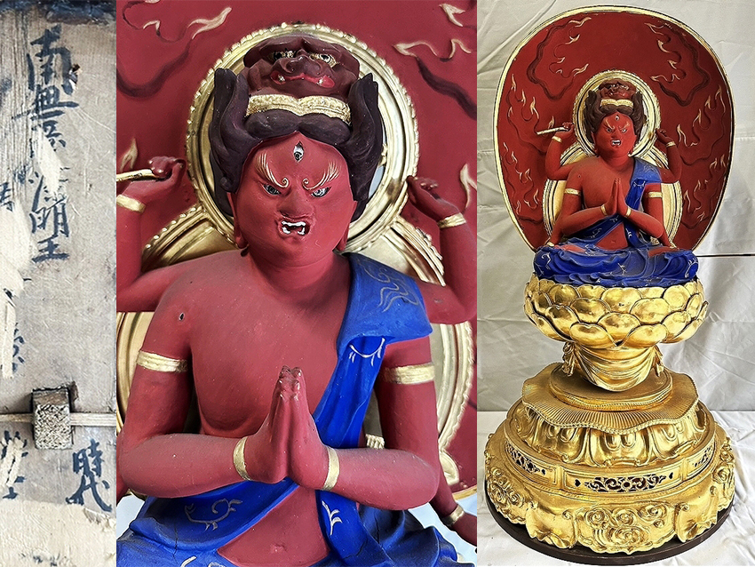 両面と額にある三眼は玉眼となっており、誠に完成度の高い逸品となっています。