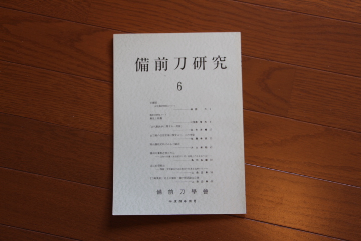 備前国➖備前刀研究ノート・兼光と長義➖古代製鉄炉に関する一考察➖播州宍粟郡の近世たたら➖山内の分業・生活並に村・百姓とのかかわり(3)➖「刀剣美術】誌上の備前・備中関係論文目録