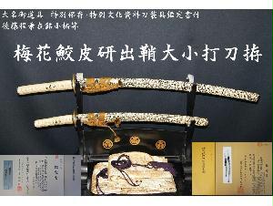 ☆大名御道具☆特別保存・特別文化資料刀装具鑑定書付☆梅花鮫皮研出鞘大小打刀拵☆後藤程乗在銘小柄笄☆【委託出品承り中】