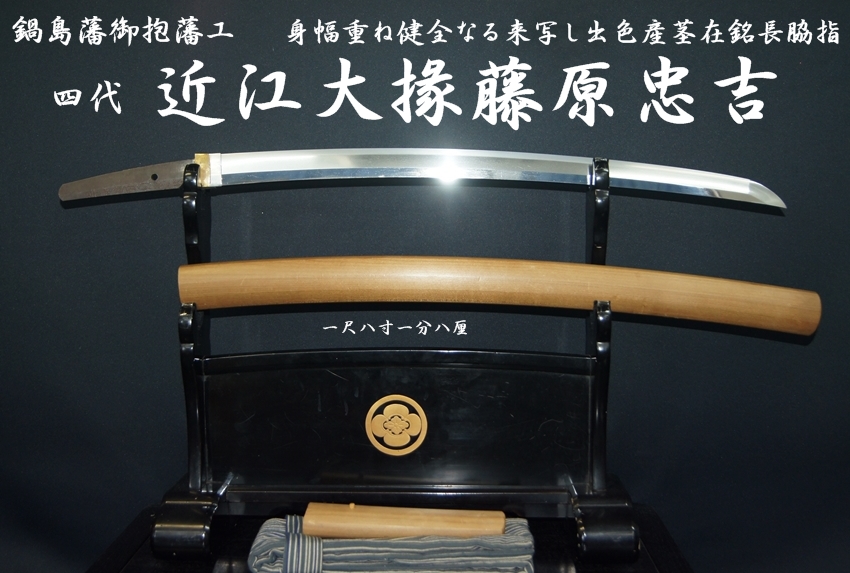 <鍋島藩御抱藩工 四代 近江大掾藤原忠吉 一尺八寸一分八厘 身幅重ね健全なる来写し出色産茎在銘長脇指>【委託出品承り中】