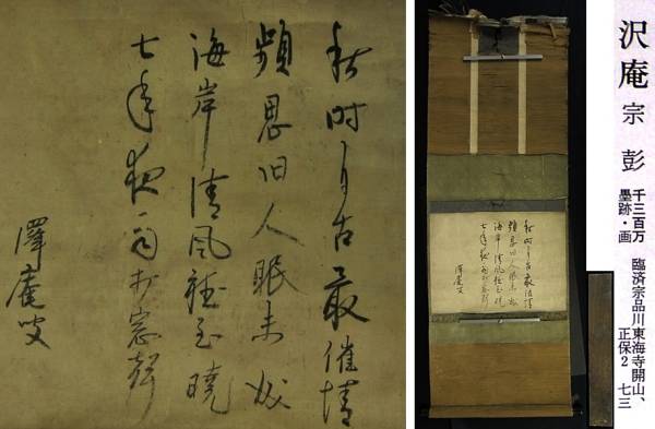 沢庵和尚肉筆書御品の部分に傷み、欠点は無く、改装されること吝かでは御座いませんが、