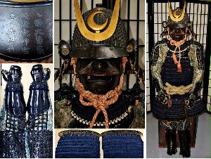 象嵌文字が施されており、面頬は鉄味黒々とした一級品であり、腹巻状の銅と袖には