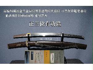 正三位有功 並詠の刀身銘が施された正真御脇差であり、
