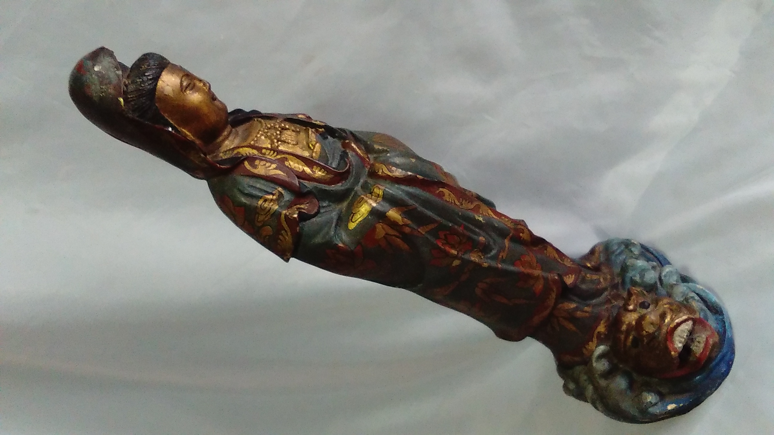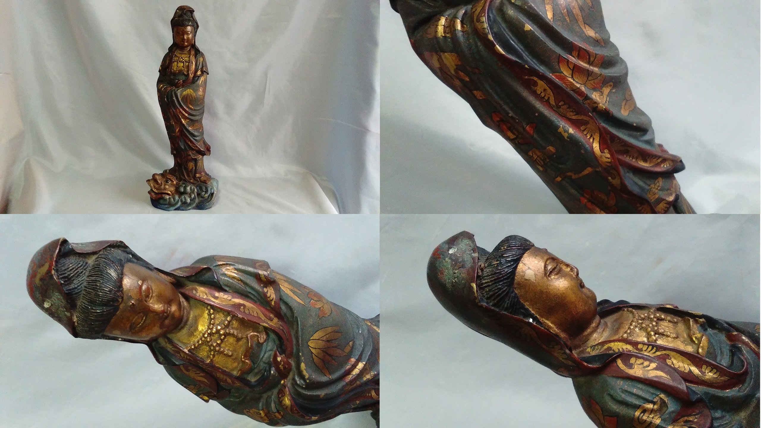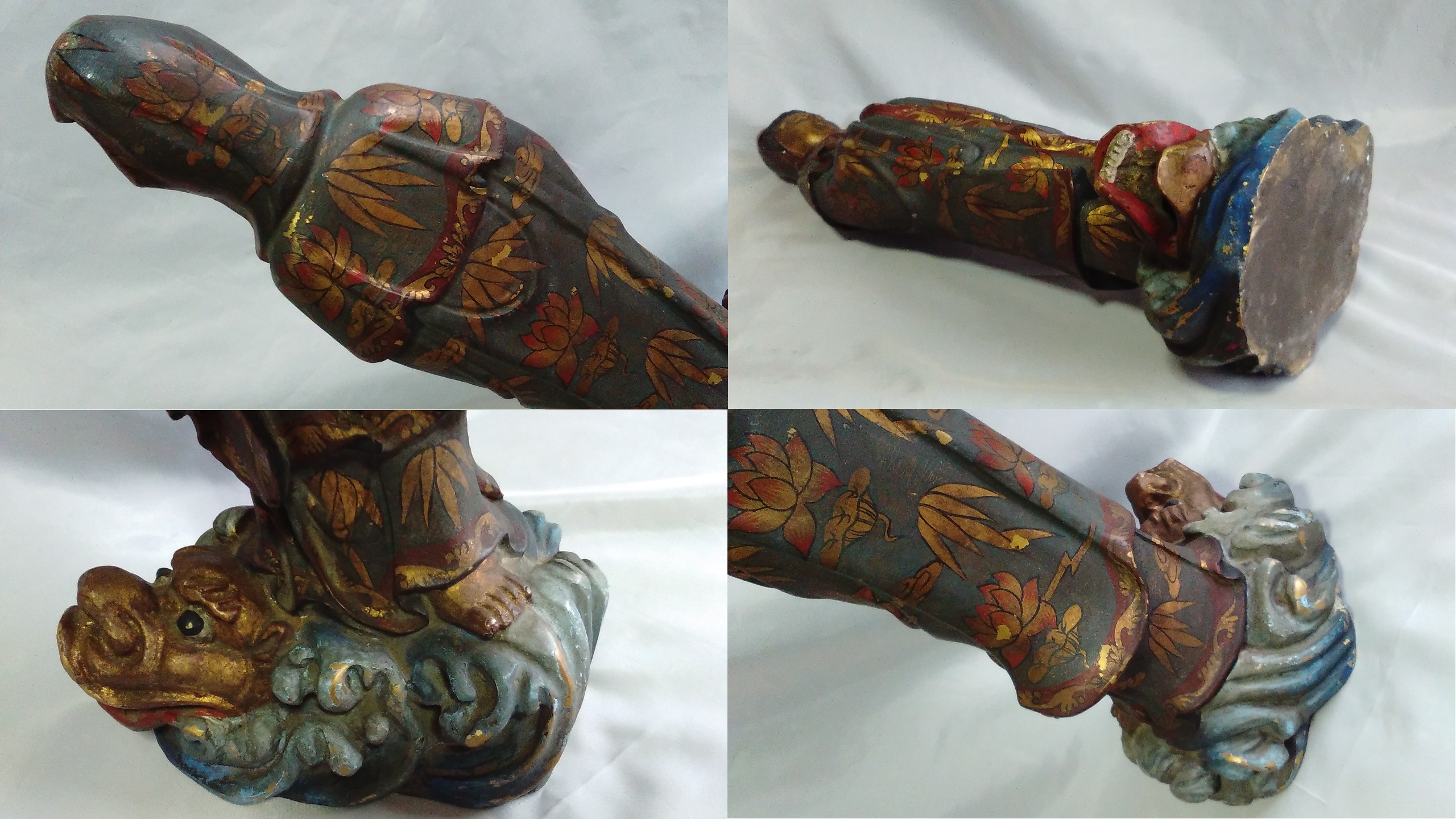 龍乗観音(騎龍観音) 真鍮像 金彩色絵 49.8cm 明治時代 H0705F