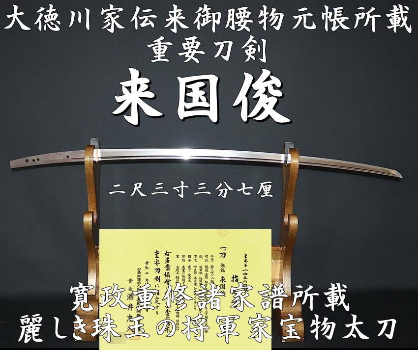 〈大徳川家伝来御腰物元帳所載 重要刀剣 来国俊 二尺三寸三分七厘