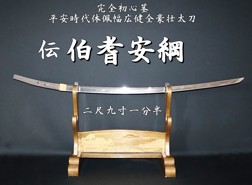 ☆伝伯耆安綱 二尺九寸一分半 完全初心茎 平安時代体佩幅広健全豪壮太刀・現行特別保存合格保証品☆