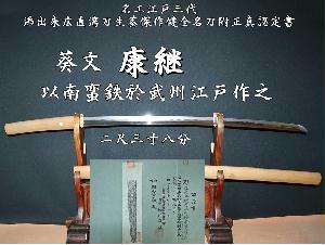 ⭐️名工江戸三代 葵文康継以南蛮鉄於武州江戸作之 二尺三寸八分 沸出来広直湾刃生茎傑作健全名刀附正真認定書 保証品