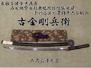 ⭐️古金剛兵衛 二尺三寸七分 古雅な健全中直刃 石目地雲文鞘無櫃阿弥陀鑢文鐔赤銅馬文目貫付半太刀拵入⭐️