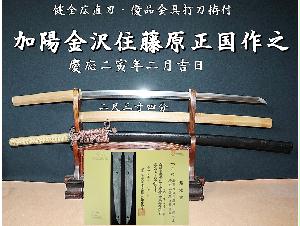 ⭐️加陽金沢住藤原正国作之 慶応ニ寅年二月吉日 二尺三寸四分 健全広直刃・優品金具打刀拵付⭐️