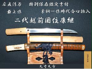 ⭐️最上作 二代越前国住康継 九寸九分 広直湾刃 特別保存鑑定書付⭐️素銅一作時代合口拵入⭐️