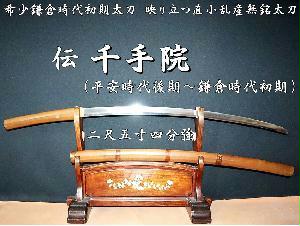 ⭐️希少鎌倉時代初期太刀⭐️伝千手院 (平安時代後期〜鎌倉時代初期)二尺五寸四分強 映り立つ直小乱産無銘太刀⭐️