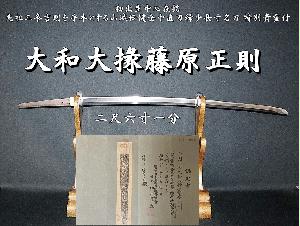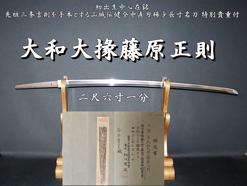 ☆大和大掾藤原正則 二尺六寸一分 初出生中心在銘 先祖三条吉則を手本とする山城伝健全中直刃稀少長寸名刀 特別貴重付特別保存合格保