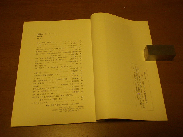 下手物のすすめ【小窪健一】・刀と私【名倉敬世】・古美濃の目貫【小野剛資】・刀剣と風俗【小笠原信夫】