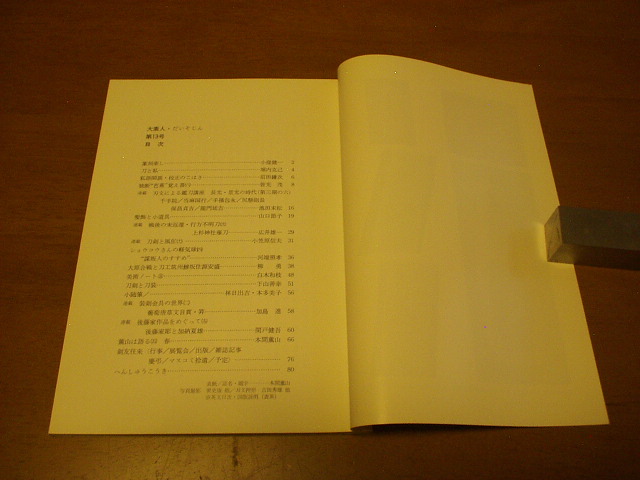 戦後の未返還・行方不明刀【広井雄一】・大原合戦と刀工築州鯵坂住源安盛【柳 勇】・刀剣と外装【下山善幸】・私の鐔遍歴【林日出吉】