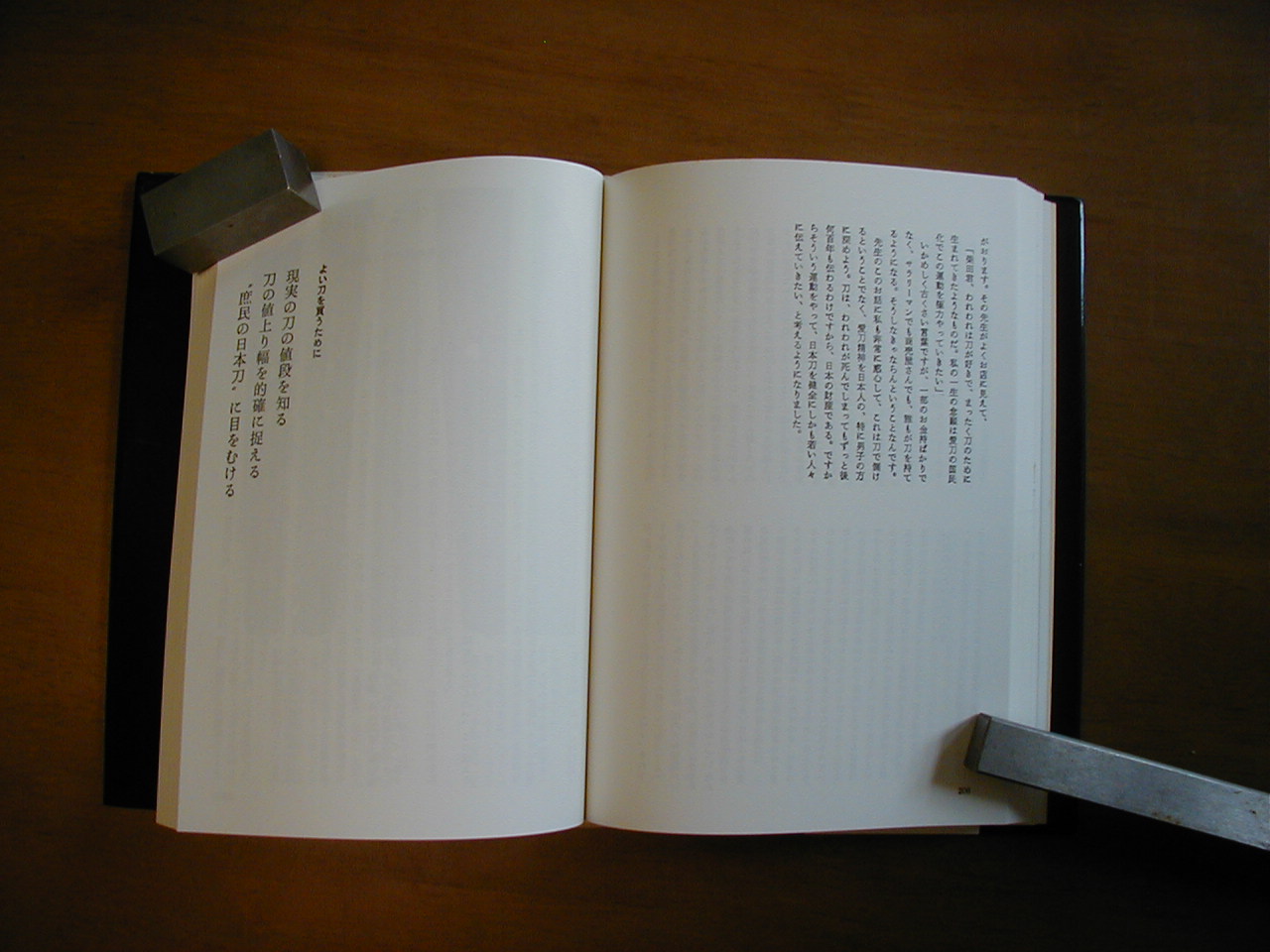 | この本は光芸出版の本で先人の刀の購入談や失敗談などを記載しています。刀の選び方や良き友の見つけ方など中々人に聞けない話も記載されています。掲載の価格も改訂版と言う事で参考にして頂けると思います。 | |||