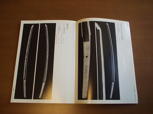 この図録は平成十五年に(財)日本美術刀剣保存協会の新作刀を掲載した図録です。無鑑査作品として今は亡き天田刀匠・大隈刀匠の作品が掲載されていてその他の無鑑査作品の他にこの年に入賞された[ 高松宮賞 ] 吉原義一 [ 文化庁長官賞] 川崎仁史[ 日本美術刀剣保存協会名誉会長賞 ] [ 日本美術刀剣保存協会会長賞] [薫山賞 ] [ 寒山賞 ]など刀匠以外にも各職方の入賞作品が掲載されています。