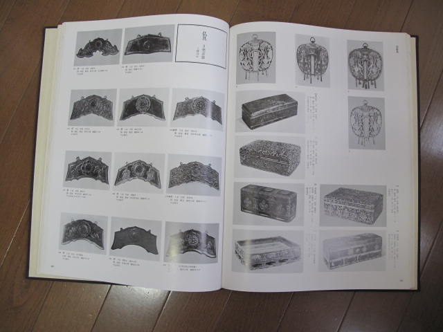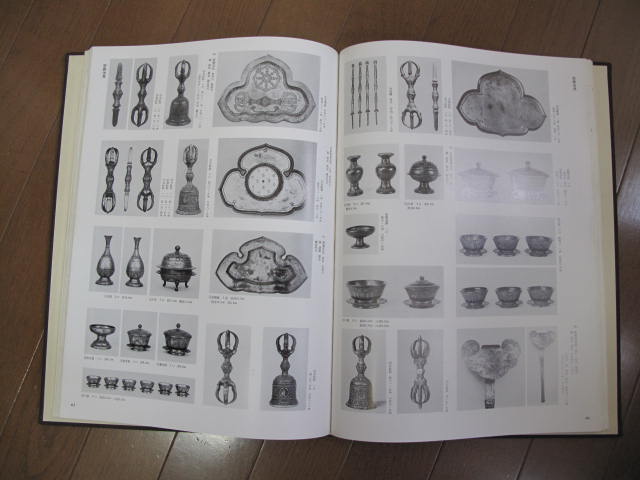 この書籍は最初に原色図版として重要文化財に認定されている。銅鏡や大壇具・金銅五種鈴と言った宗教に用いる用具の金工の図版がカラーで掲載されています。その他は鏡像・懸仏・舎利塔・舎利容器・密教法具・梵音器・吊鐘等が掲載されています。