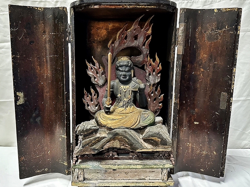 《産厨子入 不動明王坐像 厨子51cm 内仏総高約40cm 御仏像18cm》
