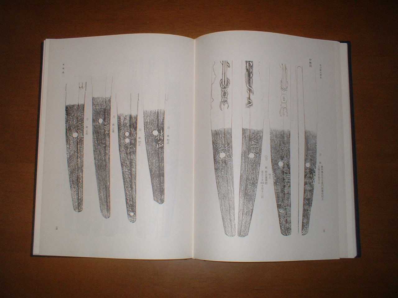 | 最初に図版として鮮明な写真と解説が有り、御物を始め国宝や重文を中心に掲載されています。本文として、奈良時代・平安時代・鎌倉時代・南北朝時代・室町時代に分かれていまして、各時代の概観や時代に活躍した刀工の解説を始め押し方を参考に解説しています。凄いのは押し方が豪華です。明治以降の有名な愛刀家の所蔵の押し方が沢山掲載されています。 | |||