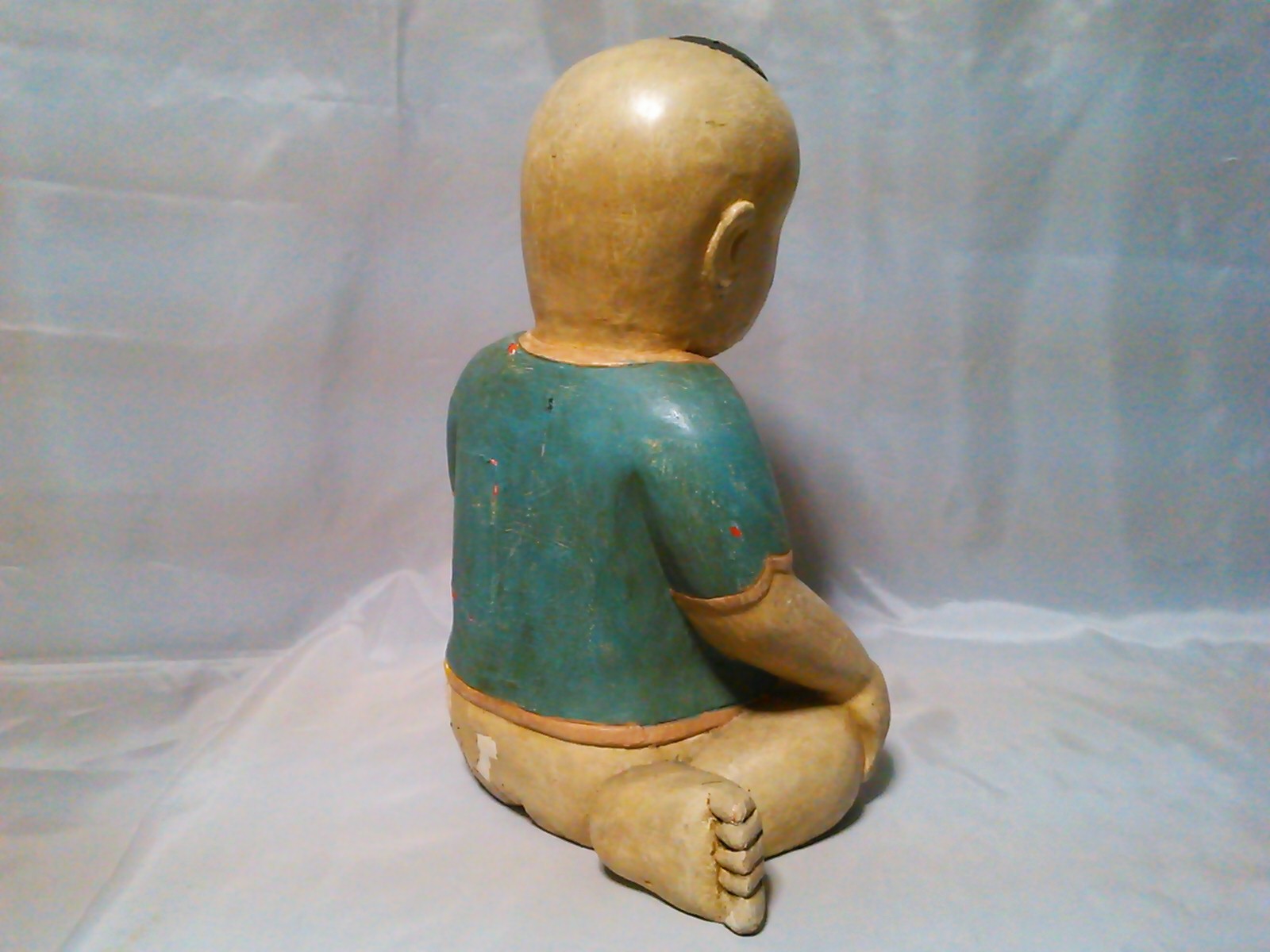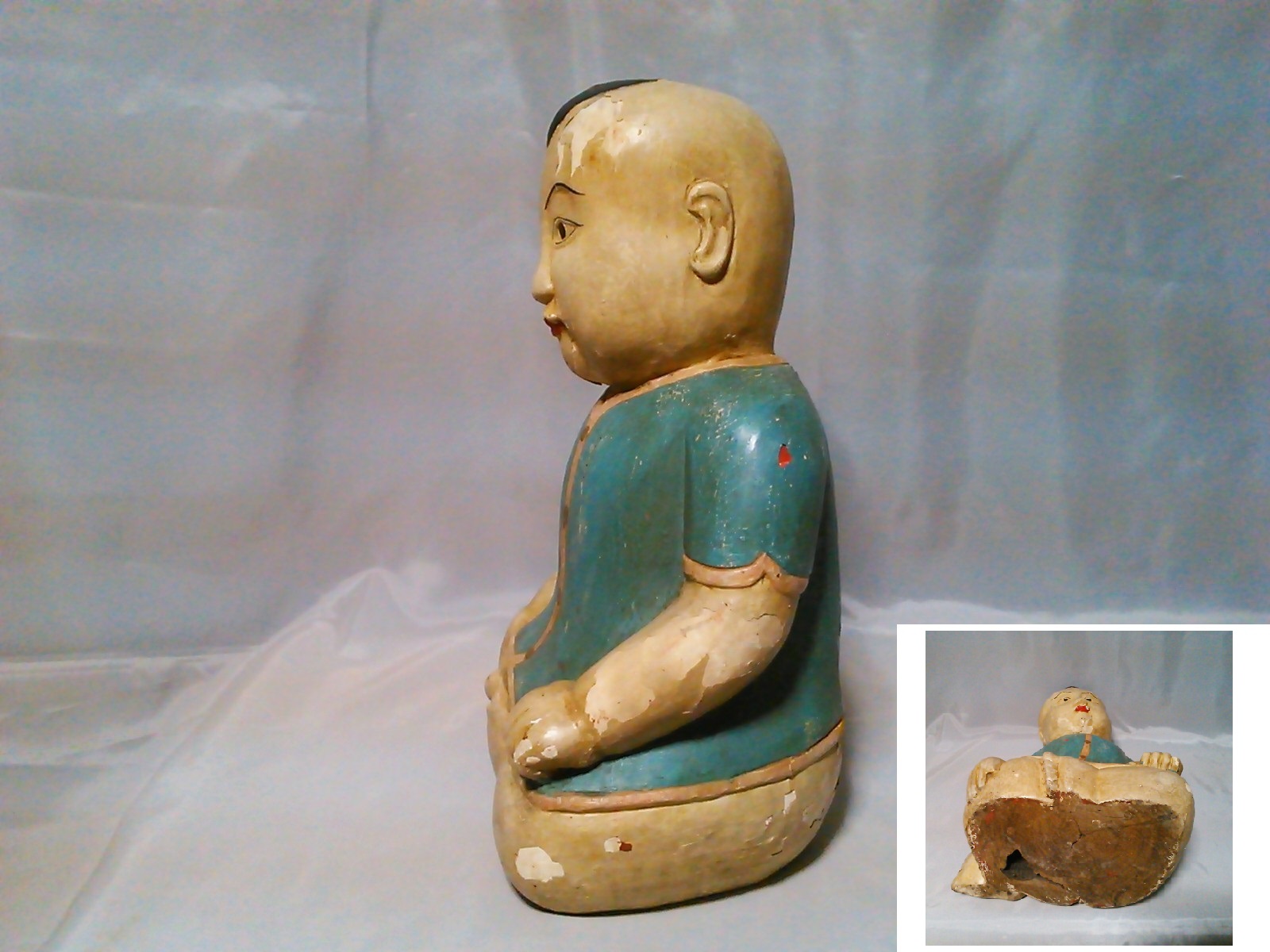 一木彫り 彩色 唐子像 清朝期骨董 F1215