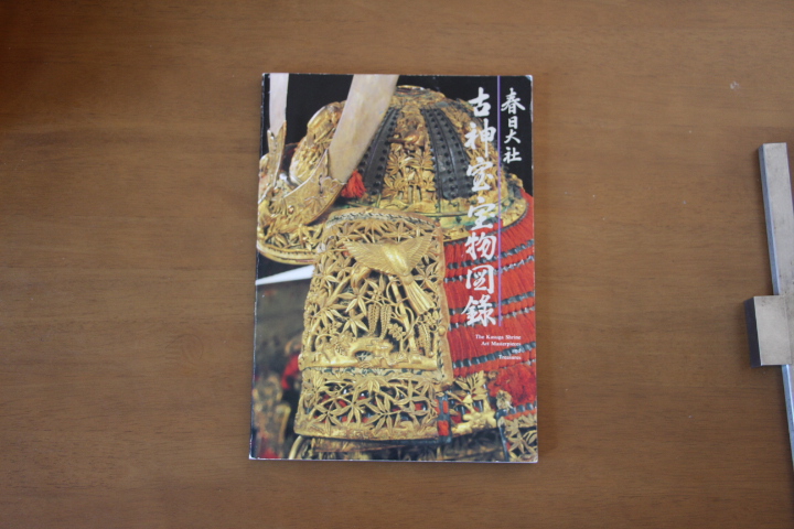 | 春日大社には500点以上の国宝と重要文化財を有する大社で未指定を含めると10.000点以上の宝物を所蔵しています。刀や太刀の宝物も多く、重文で赤銅造太刀(友成)錦包太刀(助行)柏木莵腰刀(無銘・保昌)鎧では、国宝で赤糸威大鎧・竹虎雀錺、赤糸威大鎧・梅鶯錺、黒韋威矢筈札胴丸 等の国宝の冑や鎧も沢山掲載されています。 | |||