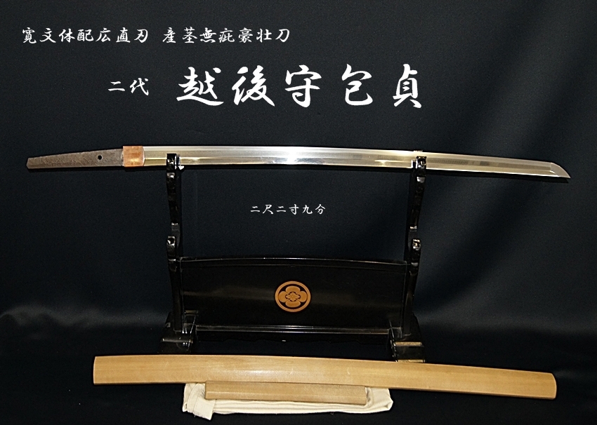 <二代 越後守包貞 寛文体配広直刃 二尺二寸九分 産茎無疵豪壮刀>【委託販売御承中】