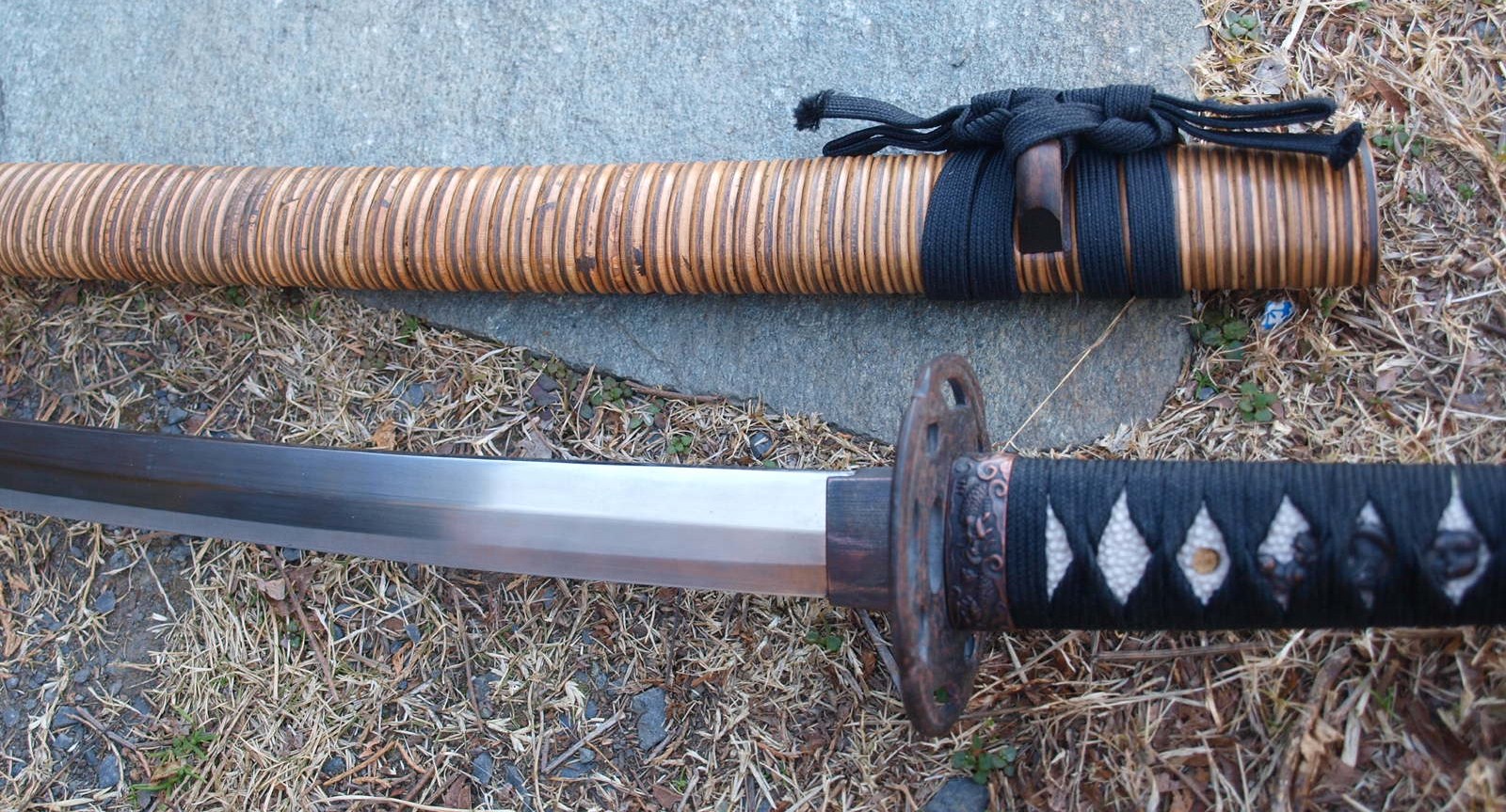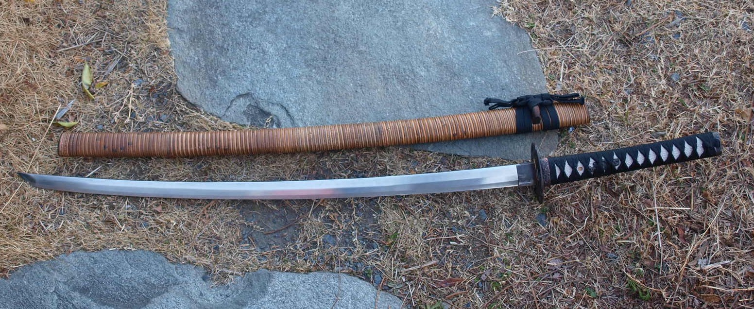 鞘巻きはつずら藤で巻いてあります。全長:102cm。
