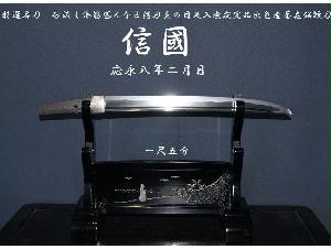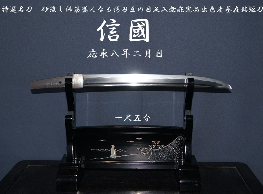 <特選名刀 信國 応永八年二月日 一尺五分 砂流し沸筋盛んなる湾刃互の目足入無疵完品出色産茎在銘短刀>【委託販売承中】