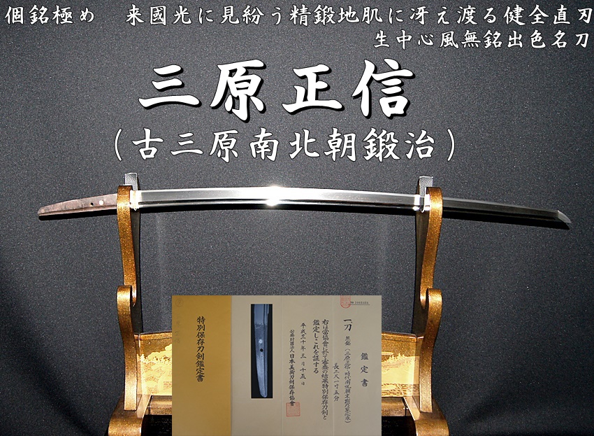 ★特別保存刀剣★ 三原正信(古三原南北朝鍛治)個銘極め 来國光に見紛う精鍛地肌に冴え渡る健全直刃 生中心風無銘出色名刀★